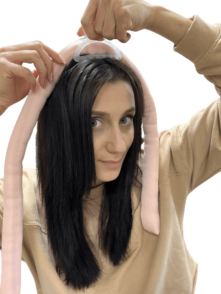 Поставете лентата за къдрене посредата на главата и я прикрепете с щипката от комплекта.