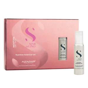 ALFAPARF SEMI DI LINO MOISTURE NUTRITIVE ESSENTIAL OIL са подхранващи ампули с мощно и интензивно действие за суха и заплитаща се коса. Интензивно подхранваща шокова терапия за много суха коса, която хидратира косъма още от неговия корен, за да предотврати дехидратацията и да балансира нивата на влага. Възстановява капилярните влакна и запечатва косъма, като го оставя изключително мек и лесен за оформяне.