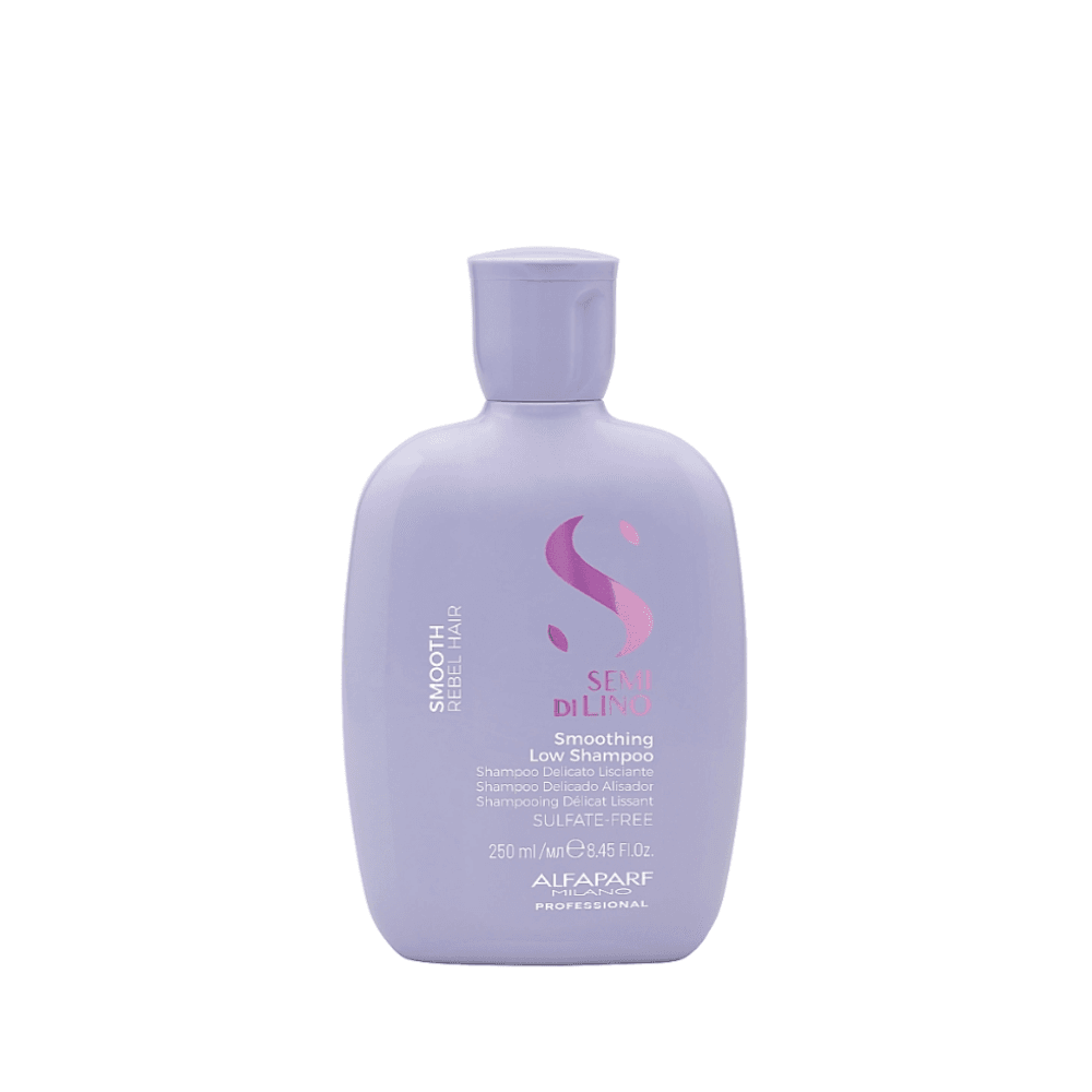 Тази интензивна маска е перфектна за коса, която има нужда от изглаждане и подхранване. Съдържа активни съставки, които проникват дълбоко в косъма, осигурявайки дълготрайна мекота и блясък. Маската предпазва косата от влага и придава гладка текстура, без утежняване. - Изглаждащ шампоан за непокорна коса – Semi Di Lino Smoothing Low Shampoo (250 мл)