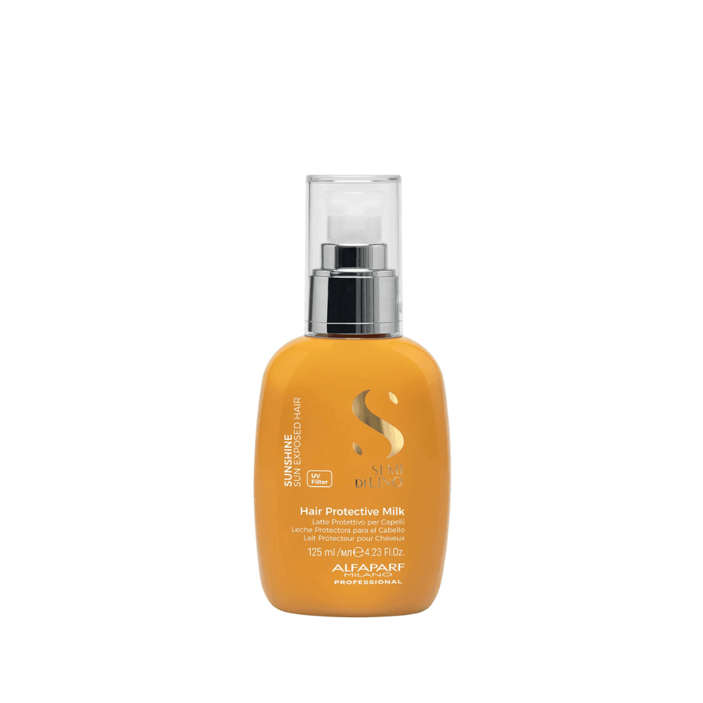 UV млякото от серията Sunshine от Alfaparf Milano е вашият верен съюзник през лятото за дълготрайна защита, мекота и сияен блясък. Успешно се бори със сухотата и накъсването, причинени от слънцето, хлора и солта, контролира фриза, защитавайки косата от външните агресии през лятото. Запазва косата мека, гладка и хидратирана.