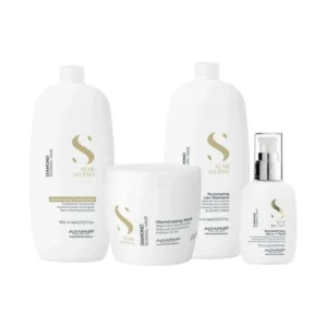 Този комплект от серията Alfaparf Semi Di Lino Diamond е създаден да придаде ослепителен блясък и здрав вид на нормалната коса. Четирите висококачествени продукта работят заедно, за да подсилят и запазят интензитета на цвета, да защитят косъма от външни агресори и да поддържат косата хидратирана, мека и копринено гладка.