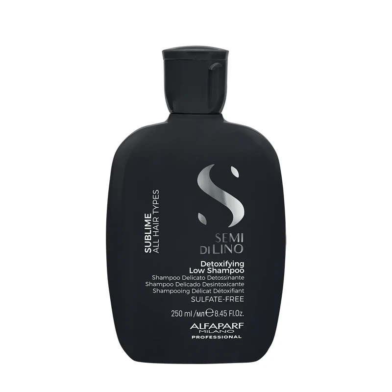 Alfaparf Semi di Lino Detoxifying Low Shampoo е специално разработен за нежно и ефективно почистване на косата и скалпа от замърсявания, остатъци от козметични продукти, минерали от твърда вода, хлор и излишък на себум. Благодарение на своята мека формула, шампоанът е подходящ за ежедневна употреба и за всички типове коса, включително чувствителен скалп. Продуктът елиминира замърсяванията и оставя косата чиста, лека и здрава.
