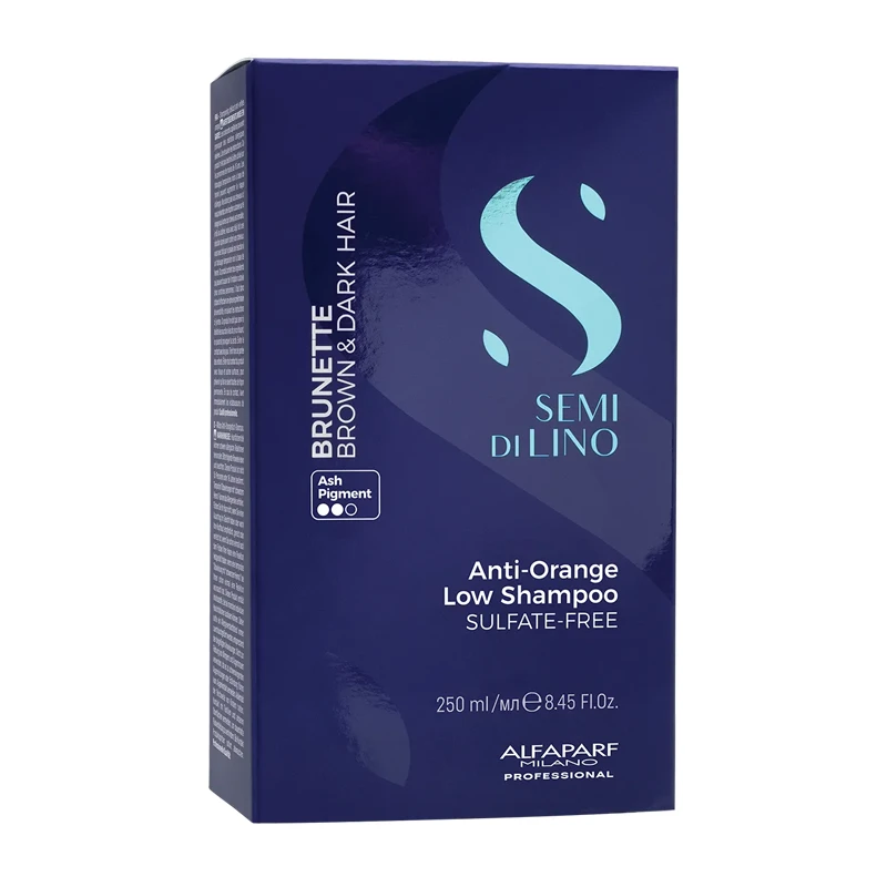 Alfaparf Anti-Orange Brunette Low Shampoo е идеален избор за хора с кестенява и тъмна коса, които желаят да се справят с нежеланите оранжеви оттенъци. Шампоанът е специално създаден за неутрализиране на топлите нюанси, като същевременно осигурява дълбоко подхранване и ревитализация на косъма. Формулиран със син пигмент, той неутрализира нежеланите оранжеви оттенъци и придава студен, наситен цвят на косата.